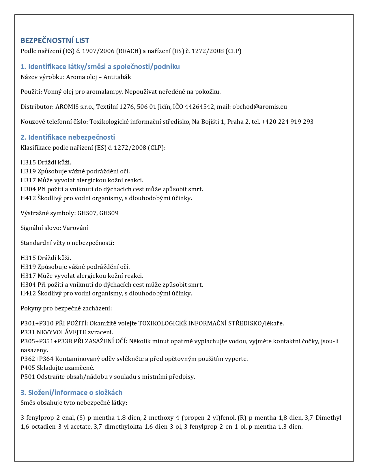 Distributor: AROMIS s.r.o., Textilní 1276, 506 01 Jičín, ČR, IČO 44264542, www.aromis.eu, e-mail: obchod@aromis.eu,