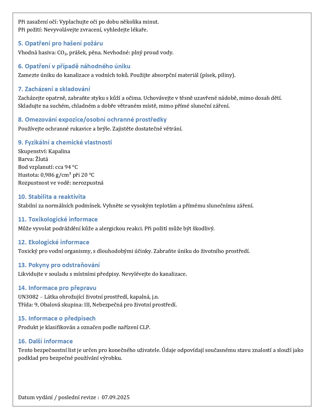 Všechny naše produkty mají řádné bezpečnostní listy (SDS), dodržujeme evropskou legislativu REACH a CLP a všechny informace o bezpečném používání uvádíme transparentně.