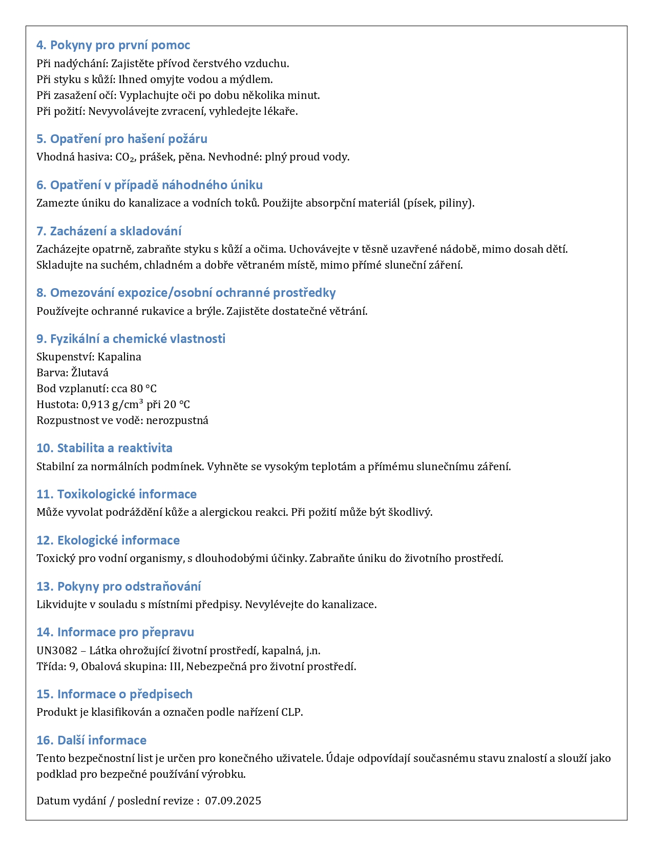 Všechny naše produkty mají řádné bezpečnostní listy (SDS), dodržujeme evropskou legislativu REACH a CLP a všechny informace o bezpečném používání uvádíme transparentně.