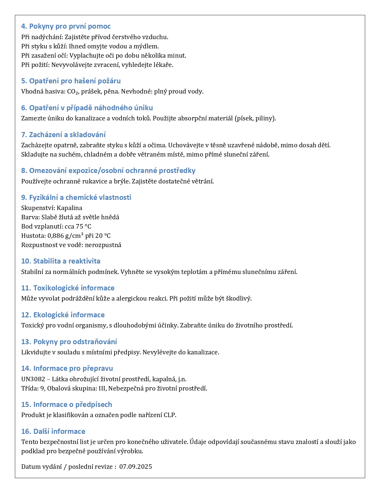 Všechny naše produkty mají řádné bezpečnostní listy (SDS), dodržujeme evropskou legislativu REACH a CLP a všechny informace o bezpečném používání uvádíme transparentně.