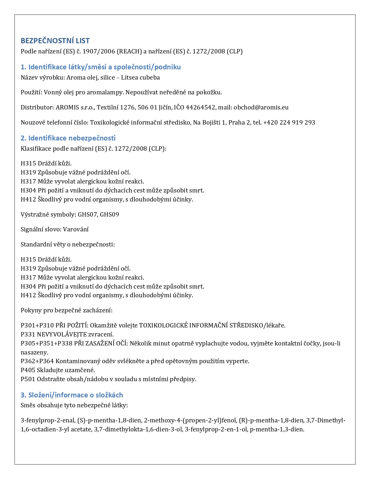 Distributor: AROMIS s.r.o., Textilní 1276, 506 01 Jičín, ČR, IČO 44264542, www.aromis.eu, e-mail: obchod@aromis.eu,