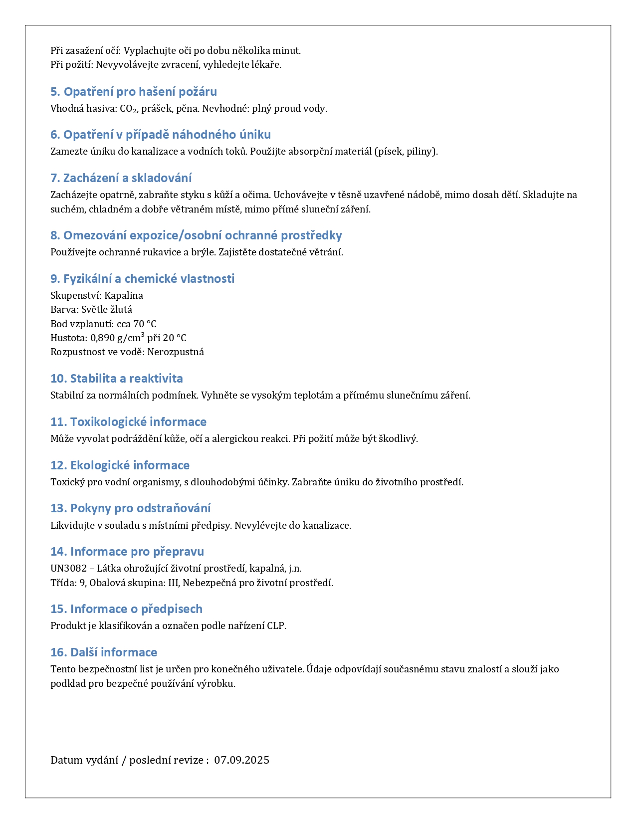 Všechny naše produkty mají řádné bezpečnostní listy (SDS), dodržujeme evropskou legislativu REACH a CLP a všechny informace o bezpečném používání uvádíme transparentně.