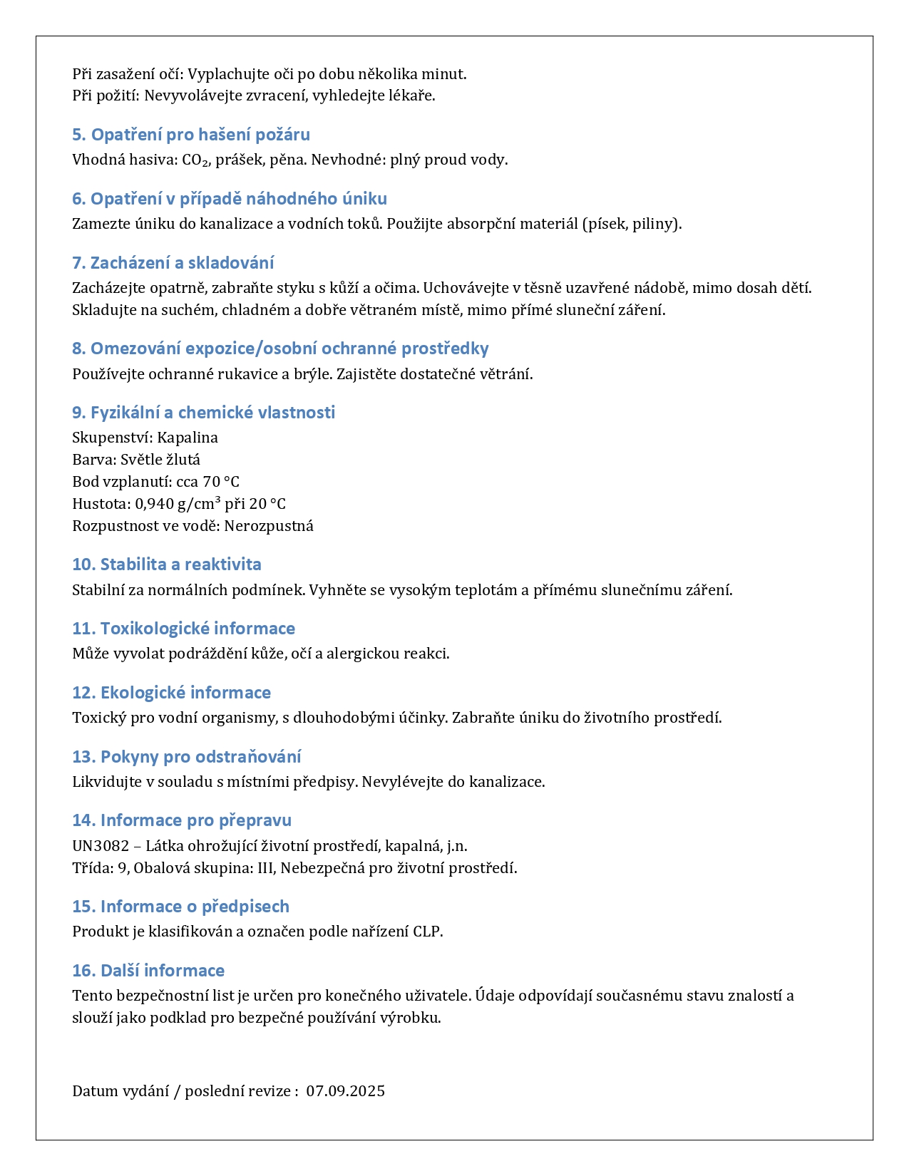 Všechny naše produkty mají řádné bezpečnostní listy (SDS), dodržujeme evropskou legislativu REACH a CLP a všechny informace o bezpečném používání uvádíme transparentně.