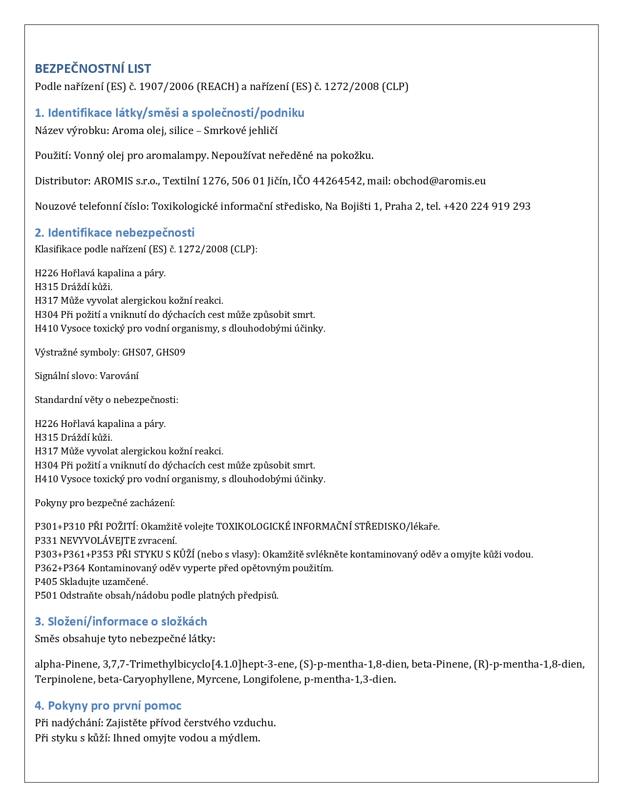 Distributor: AROMIS s.r.o., Textilní 1276, 506 01 Jičín, ČR, IČO 44264542, www.aromis.eu, e-mail: obchod@aromis.eu,
