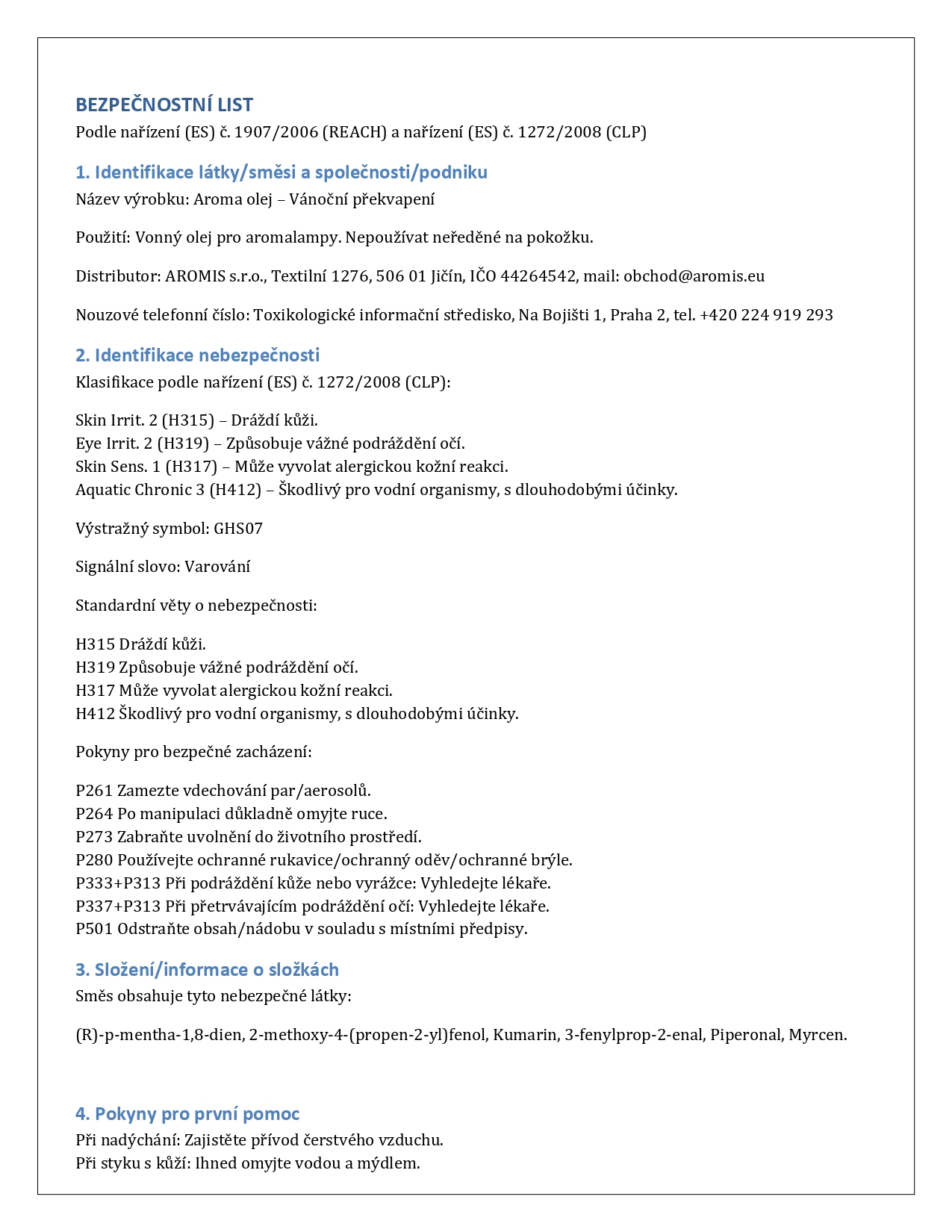 Distributor: AROMIS s.r.o., Textilní 1276, 506 01 Jičín, ČR, IČO 44264542, www.aromis.eu, e-mail: obchod@aromis.eu,
