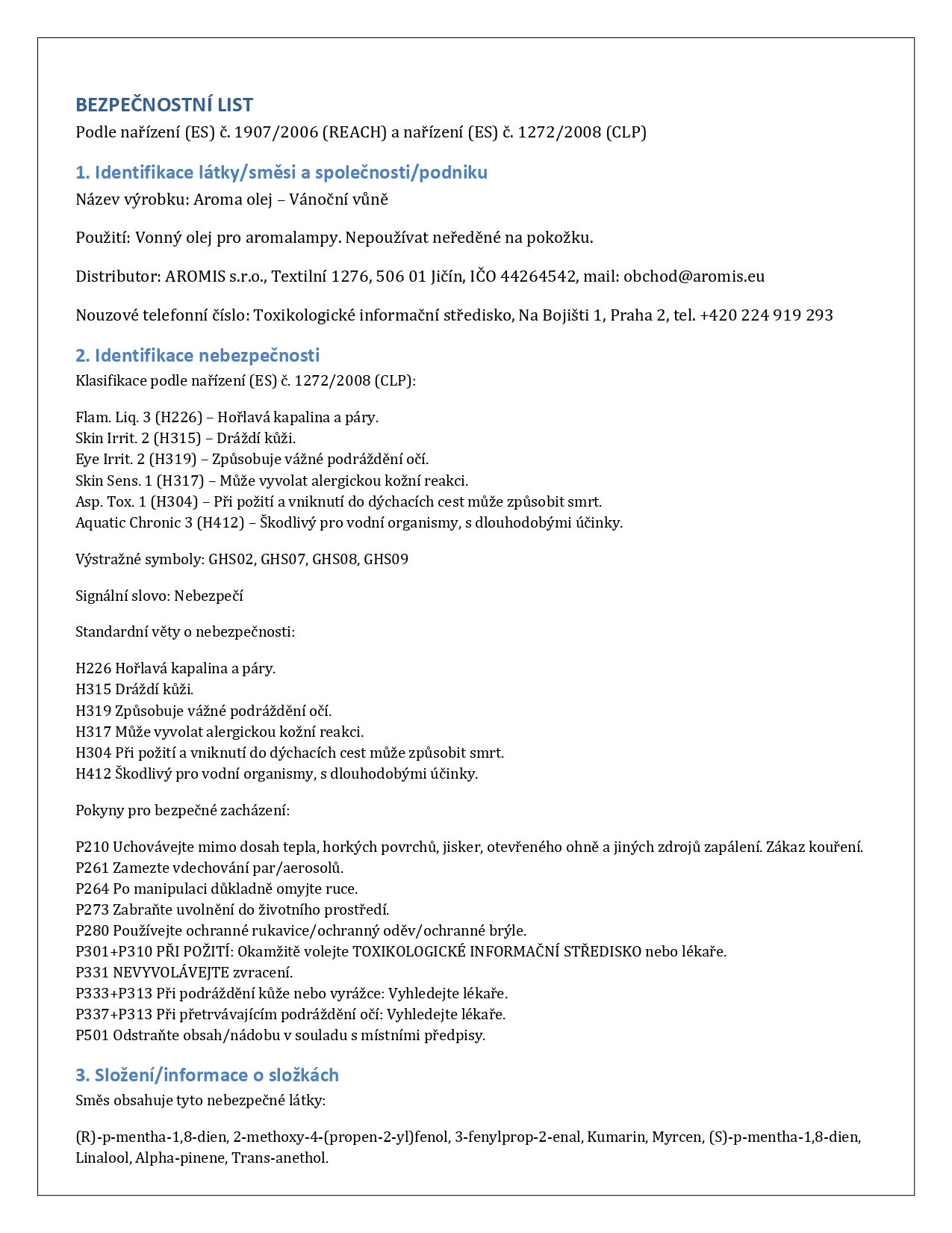 Distributor: AROMIS s.r.o., Textilní 1276, 506 01 Jičín, ČR, IČO 44264542, www.aromis.eu, e-mail: obchod@aromis.eu,