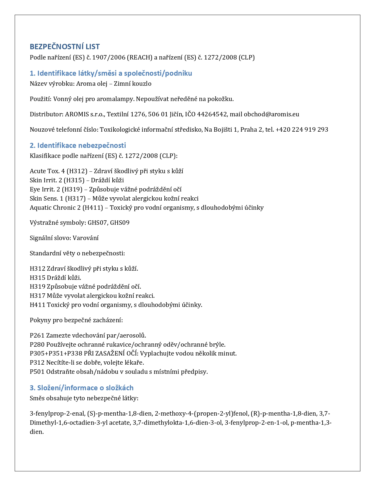Distributor: AROMIS s.r.o., Textilní 1276, 506 01 Jičín, ČR, IČO 44264542, www.aromis.eu, e-mail: obchod@aromis.eu,